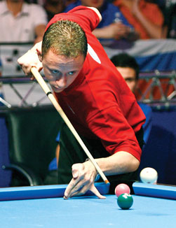 | Van Boening's ability to bear down made him invaluable at the Mosconi Cup. (Photo: Lawrence Lustig) |