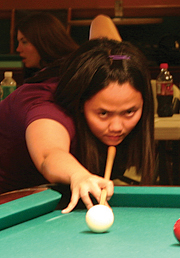 Then she had to deal with Ewa Laurance in her first match on the left side. Climbing on the hill with an 8-5 lead, Ranola looked set to advance over the two-time player of the year. Laurance, however, fought back to join Ranola on the hill at 8 games apiece. In the case game, Ranola assumed control of the table and found herself in perfect shape for the 9 when Laurance threw in the towel.